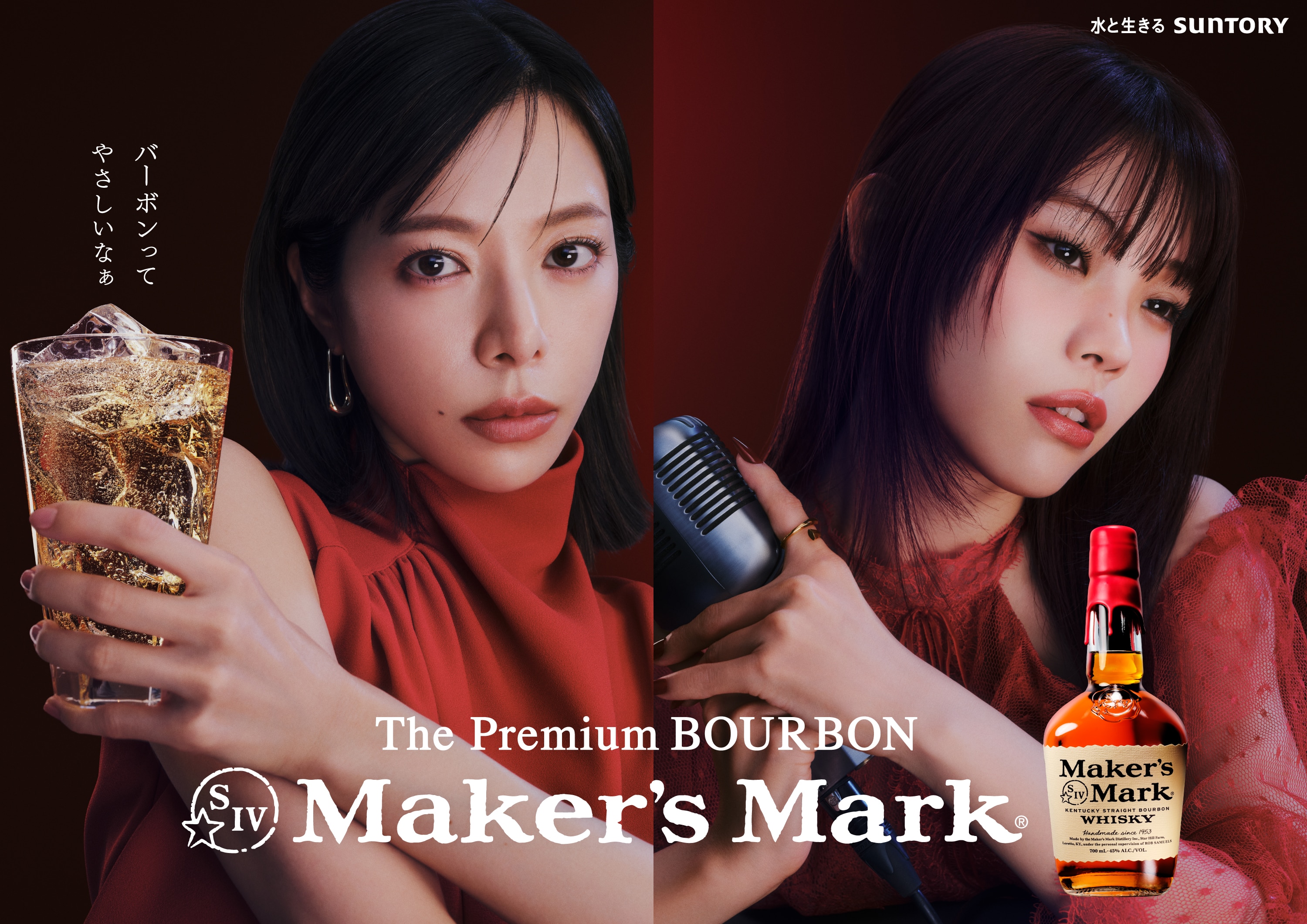 「メーカーズマーク」のブランドカラー“赤”を印象的に演出し、プレミアムな世界を描いた最新CM『異星人たち』篇に俳優・桜井ユキさんとの共演で登場しています。
